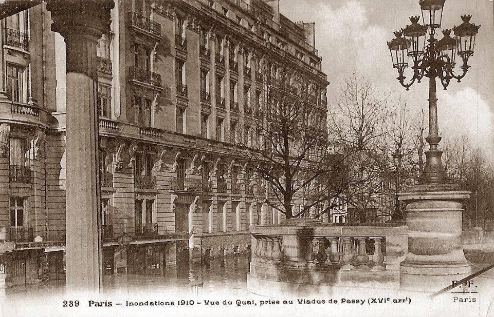 PARIS INONDATIONS 1910 VUE DU QUAI PRISE DU VIADUC DE PASSY RARE BELLE CARTE
