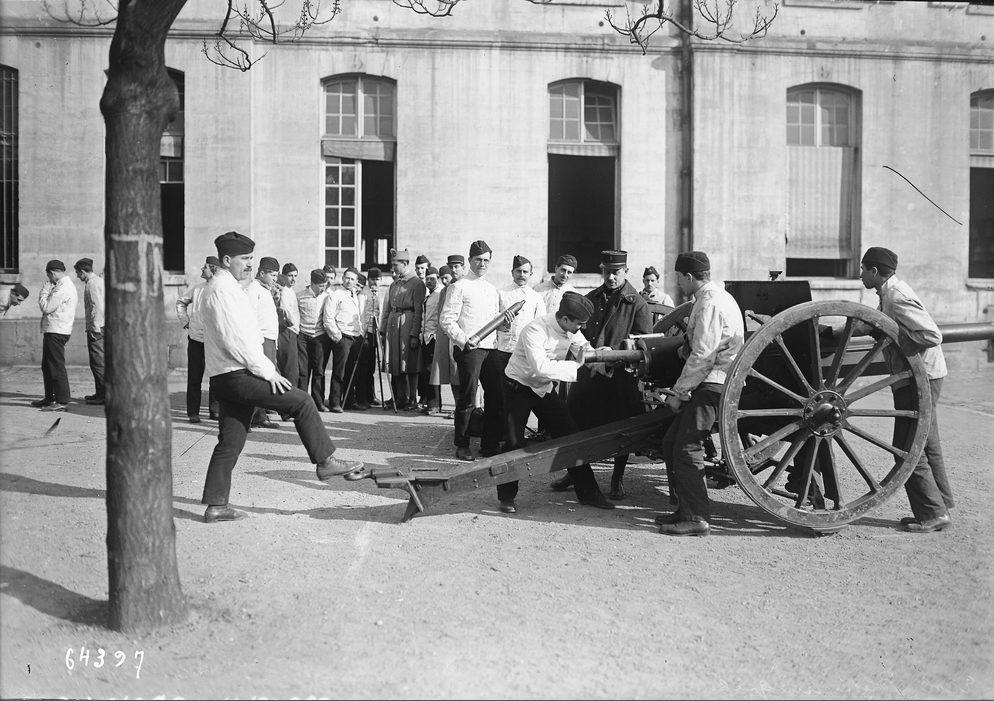 École polytechnique : élèves s'entraînant au canon