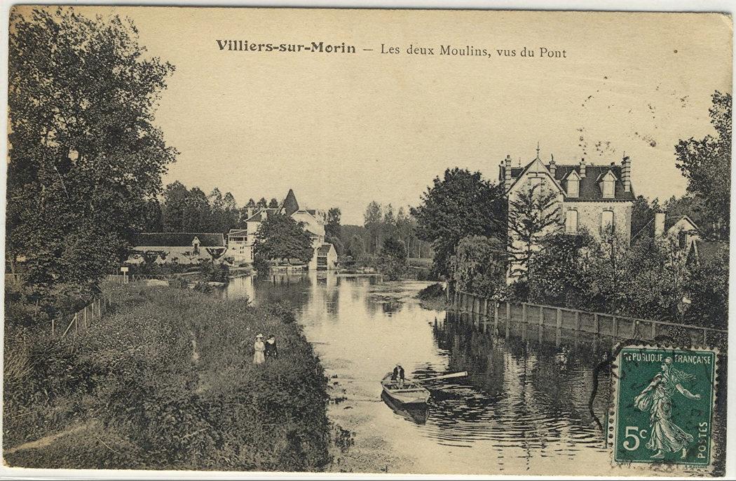 Villiers-sur-Morin.  Vue sur les deux Мoulins, vus du Pont