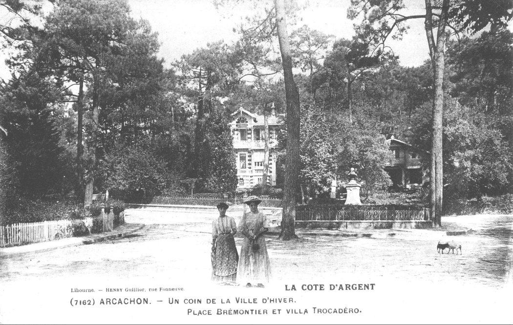 Arcachon. Un coin de la Ville d'Hiver. Place Brémontier et villa Trocadéro