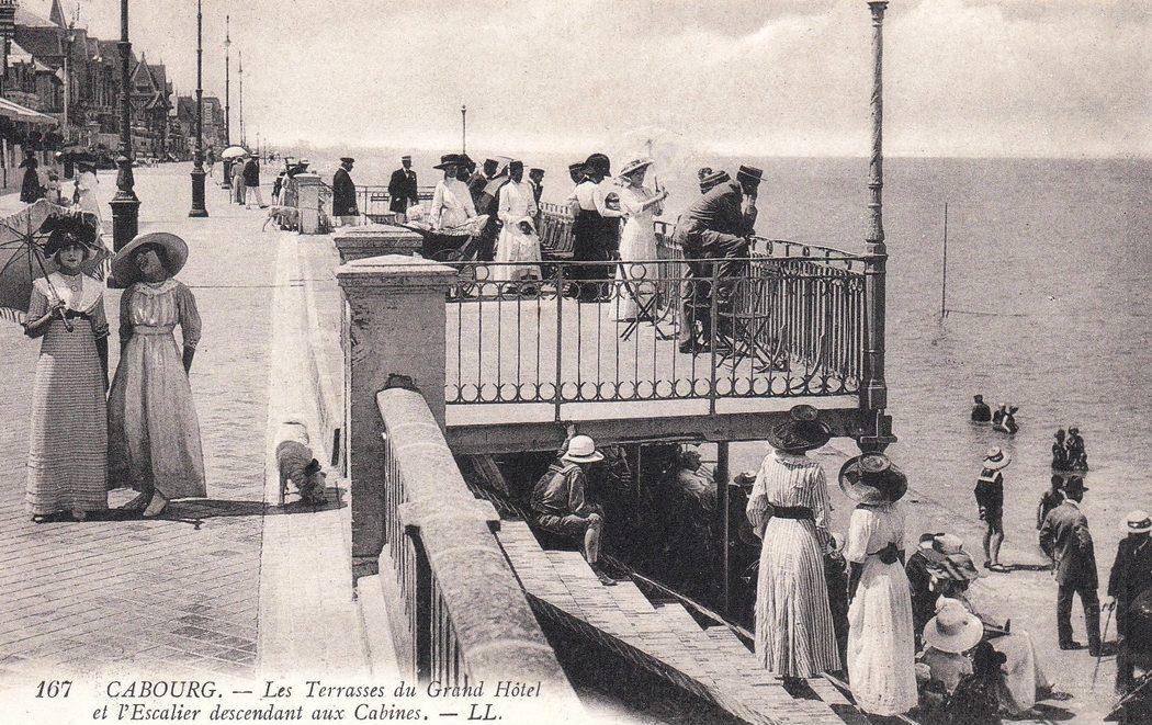 Calvados - Les Terrasses du Grand Hôtel et l'Escalier descendant aux Cabines