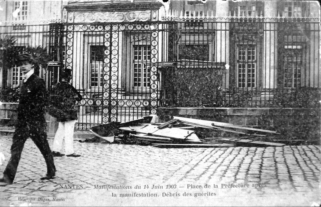 Place de la Préfecture aprés la Manifestation. Débris des guérites