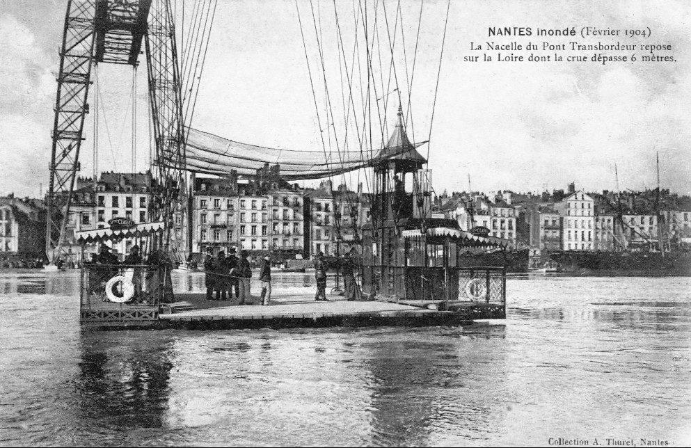 La nacelle du pont Transbordeur au niveau de la Loire pendant la crue de février 1904