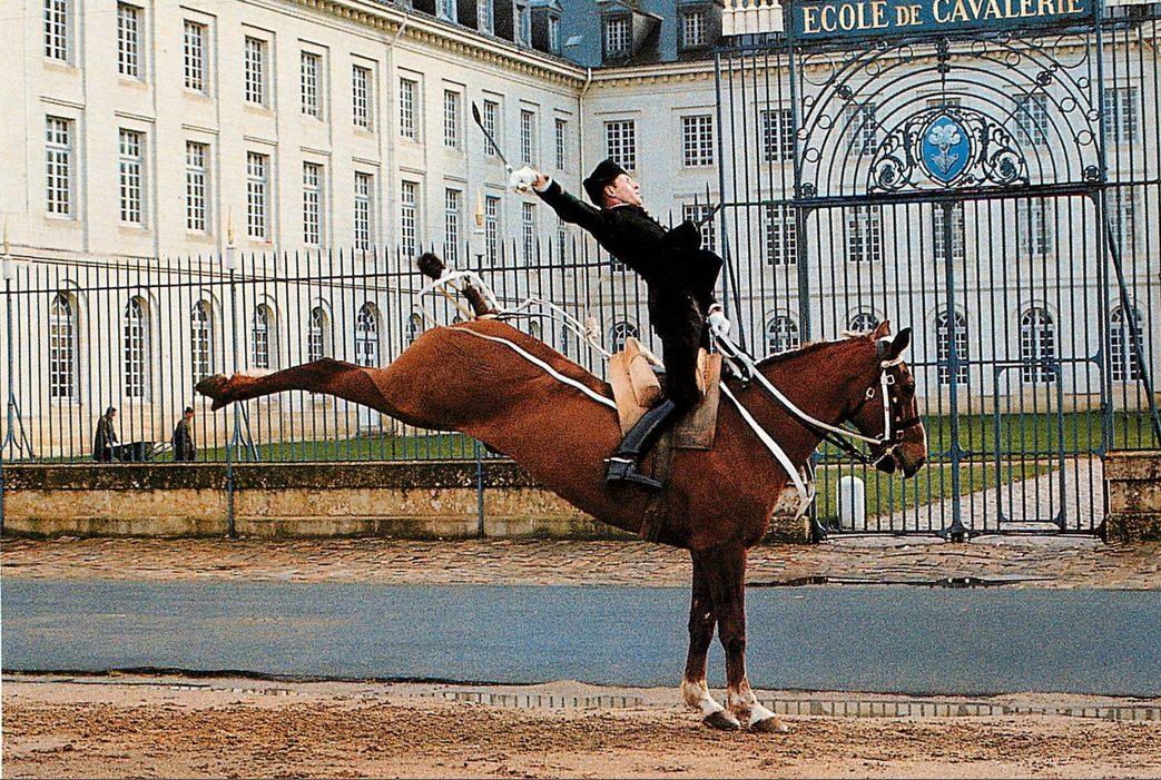 Saumur - École de Cavalerie. Groupade du cadre noir devant l'école