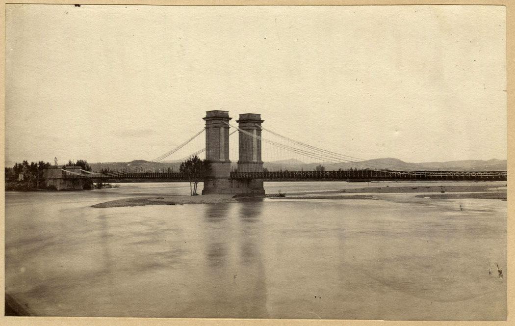 Crue de la Durance en 1872 au pont suspendu de Pertuis