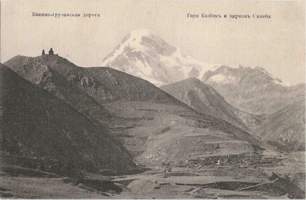 Военно-Грузинская дорога. Гора Казбек и церковь Самеба