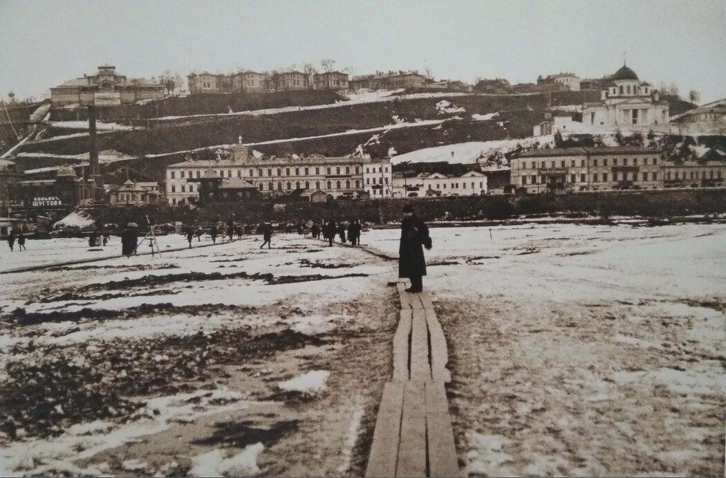 Зимний переход через Оку. Вид на Благовещенский мужской монастырь