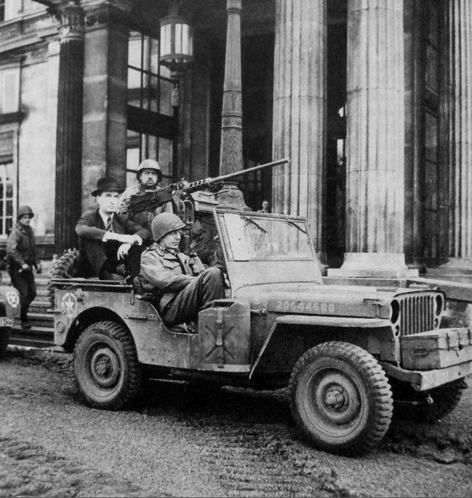 Arrested Alfried Krupp sitzt in einem Geländewagen der amerikanischen Armee