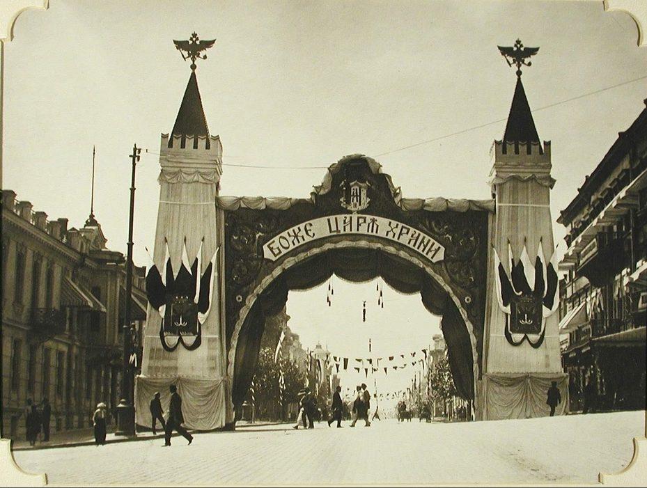 Триумфальная арка на Пушкинской улице у здания Думы, сооружённая в честь приезда императора