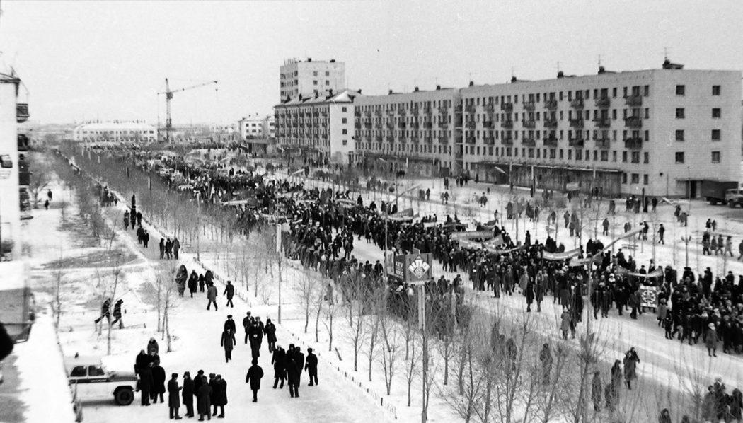 Демонстрация 7 ноября на улице Дзержинского