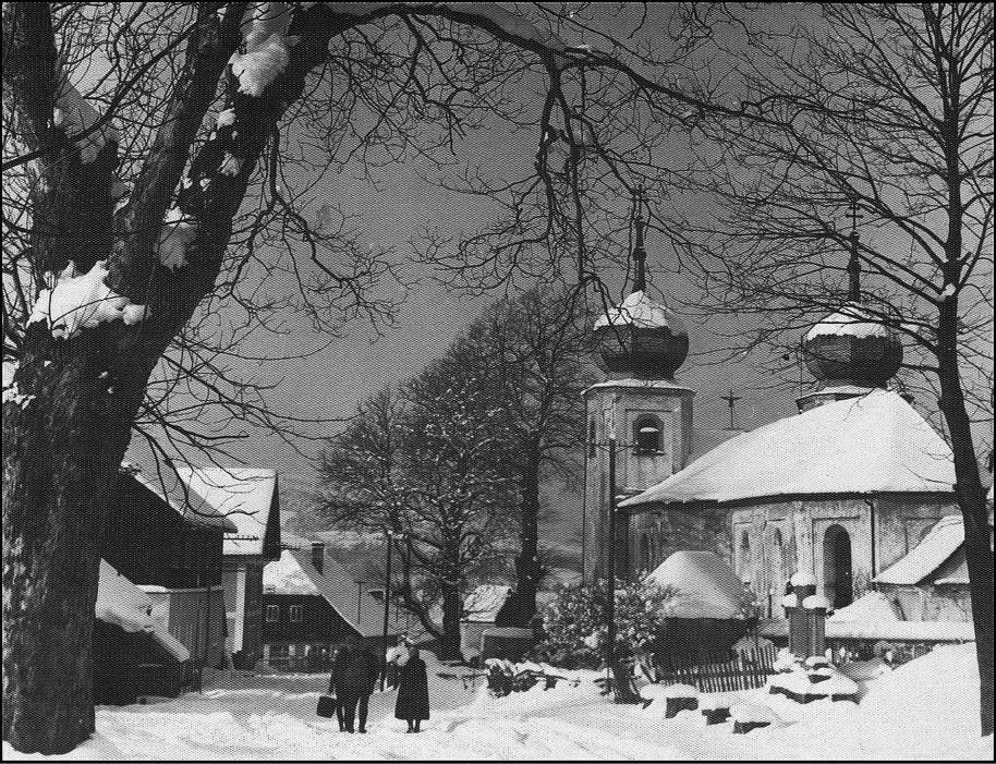 Javorná. Zimní partie u kostela