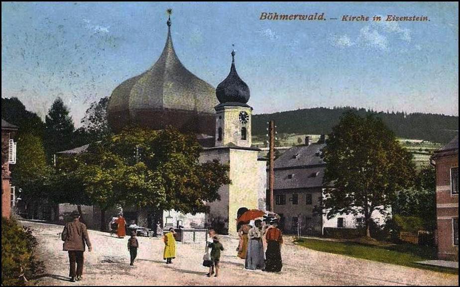 Železná Ruda. Pohled ulicí ke kostelu