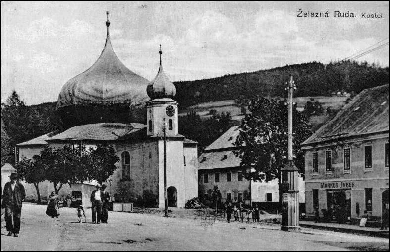 Železná Ruda. Pohled ulicí ke kostelu