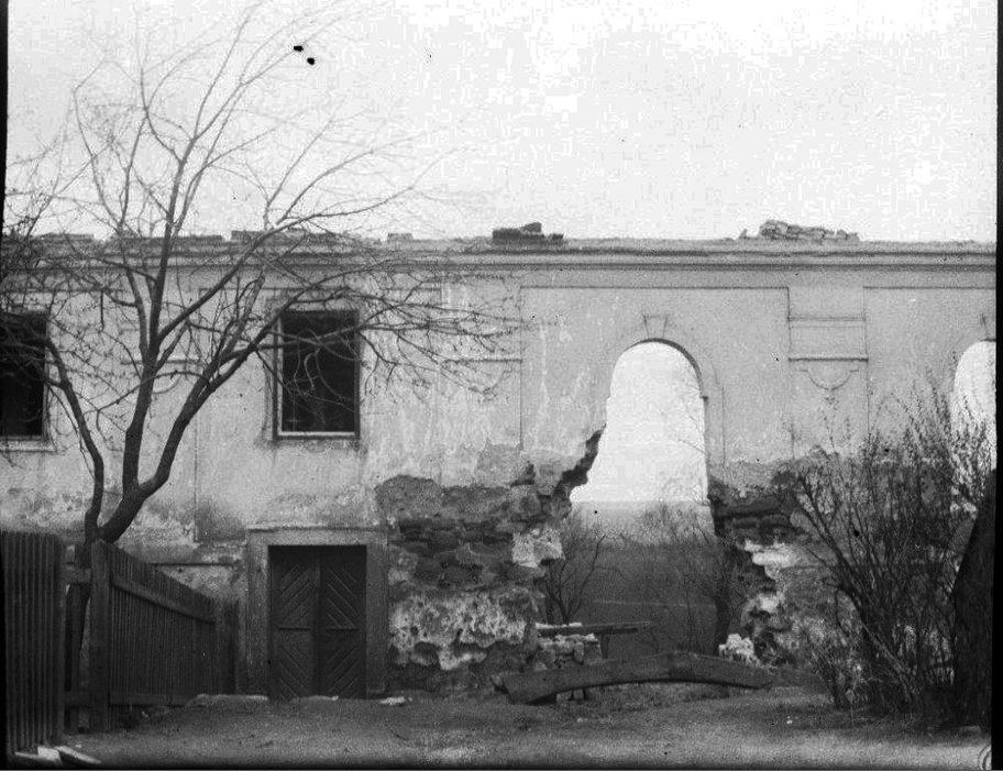 Kozolupy, jižní průčelí synagogy a školy před zbořením