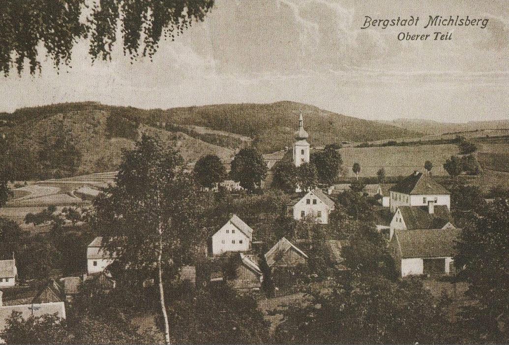 Michalovy Hory, kostel sv. Michala, celkový pohled na obec s kostelem