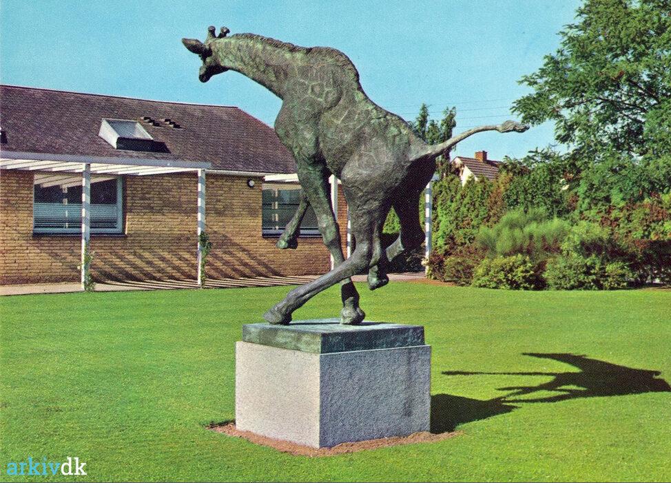 Haarby, Skolevej. Girafføl foran Haarby Skole
