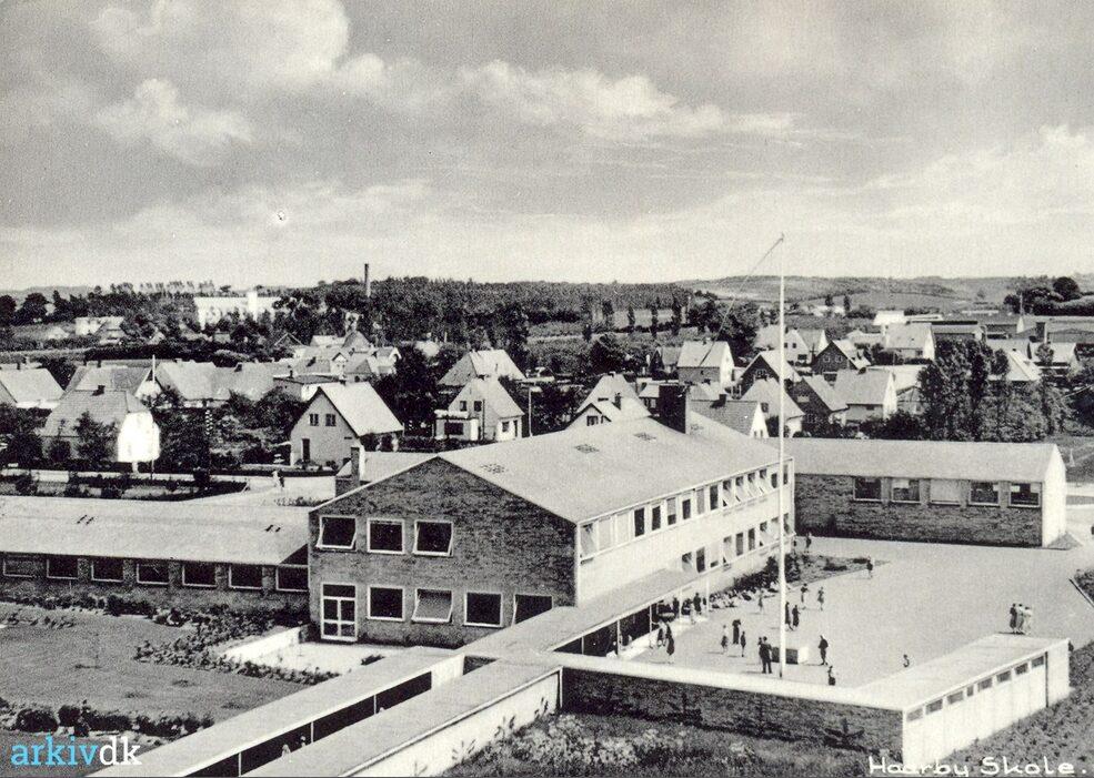 Haarby Skole med børn i skolegården