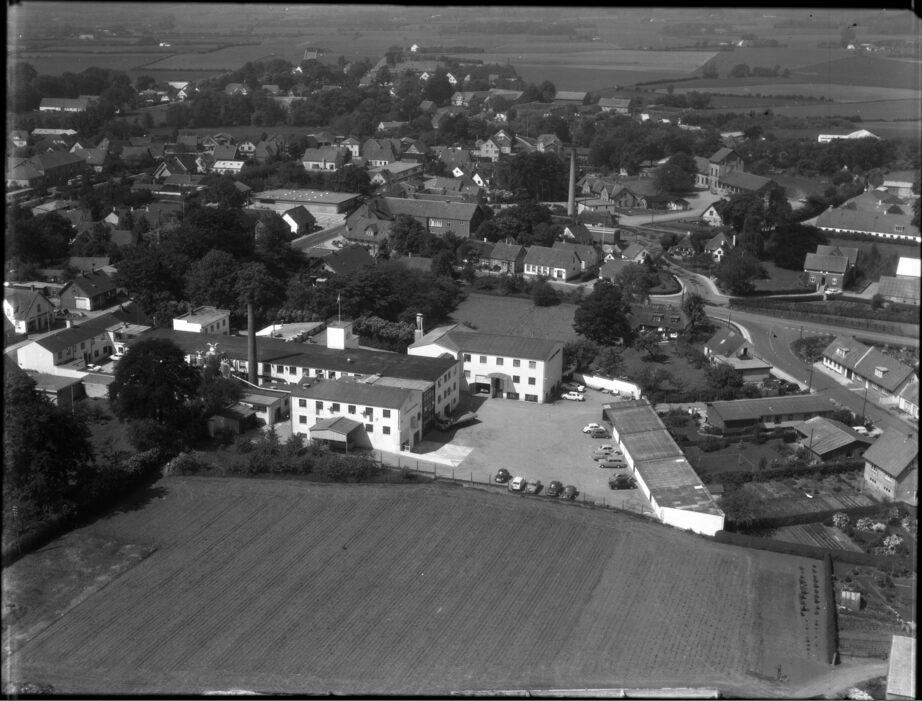 Haarby set fra Luften. C. M. Madsens Fabriker i forgunden
