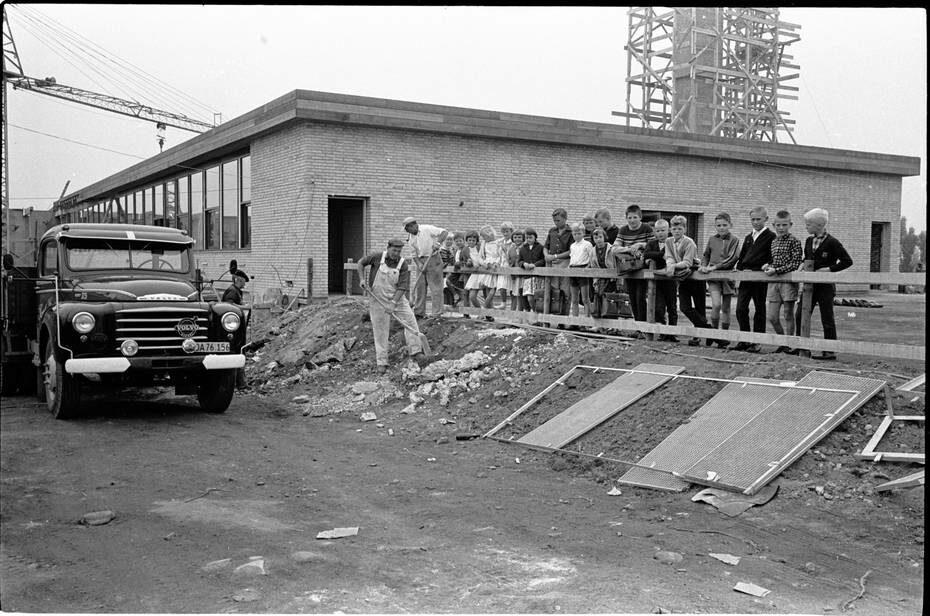 Børn ser på Troelskærskolens byggeri