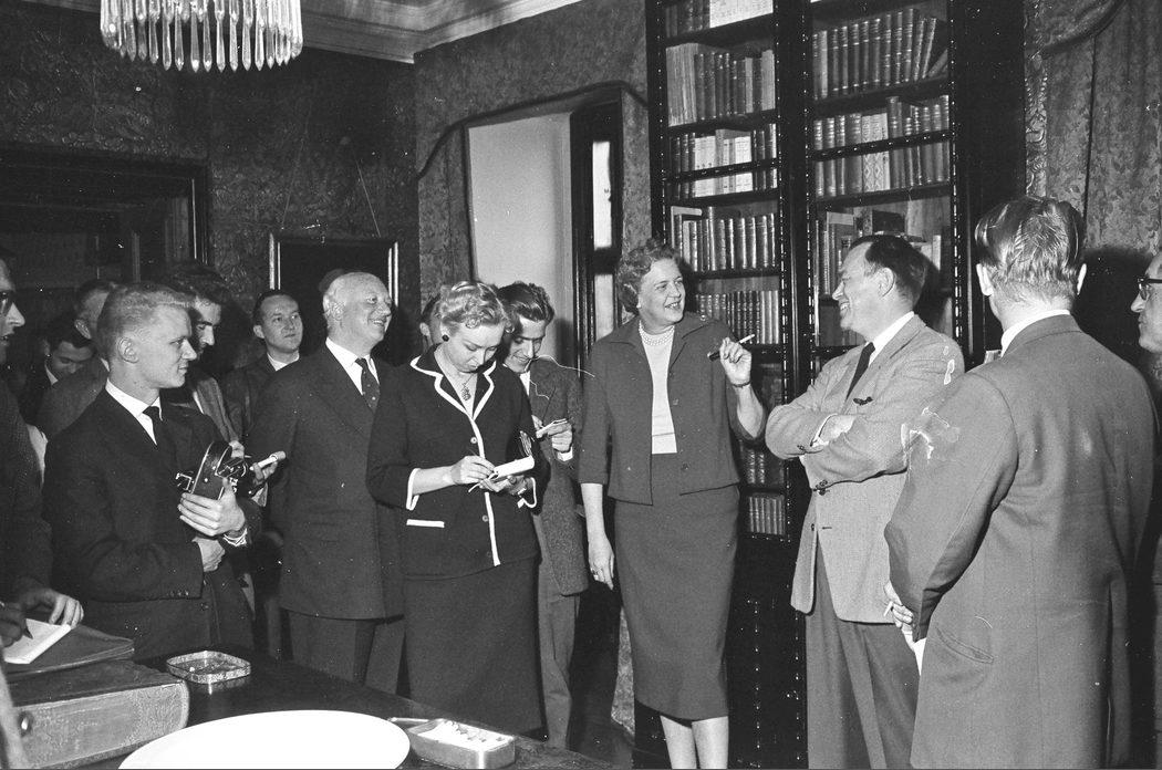 Tranekær Slot. Forsamlingen tager notater under rundvisning i biblioteket