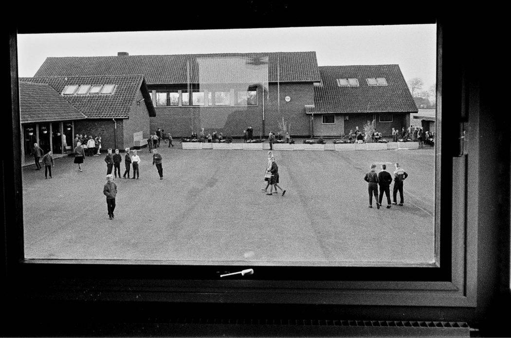 Hyllehøjskolen. Udsigt fra vindue på skolegård