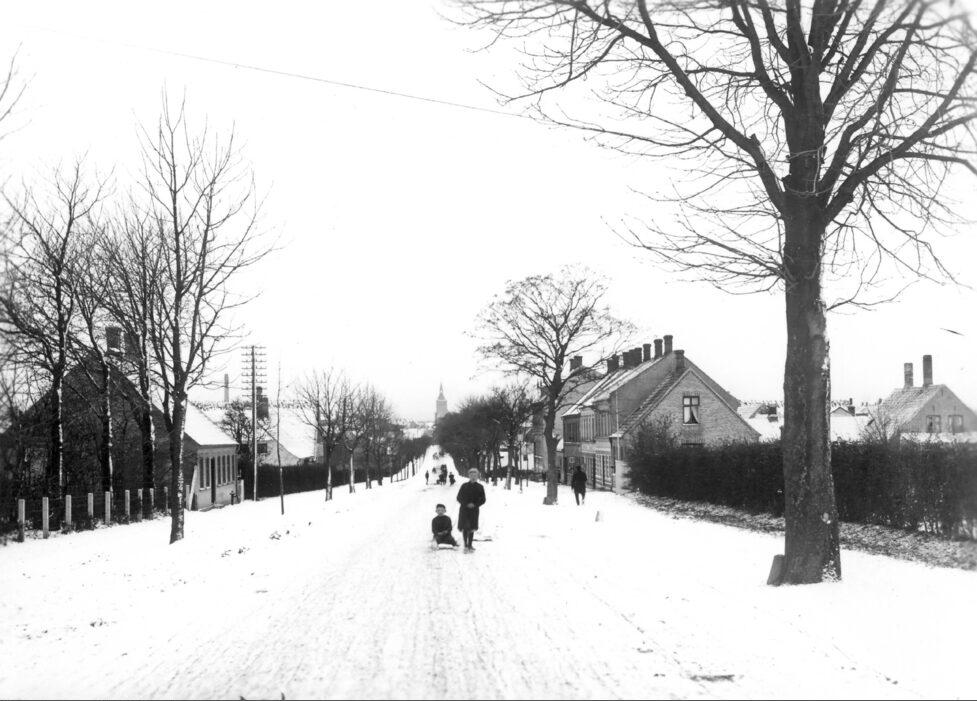Nyborgvej, set mod vest, i baggrunden Sct. Knuds Kirke