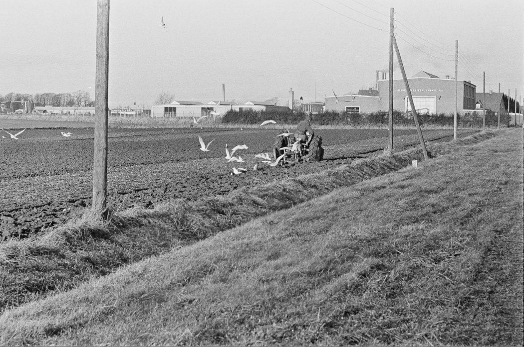 Efterårspløjning med traktor ved Svendborgvej. I baggrunden ses Maskinfabrikken Phønix A/S, Egegårdsvej 7