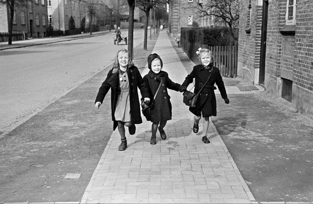 Tre piger i Billesgade, set fra Heltzensgade