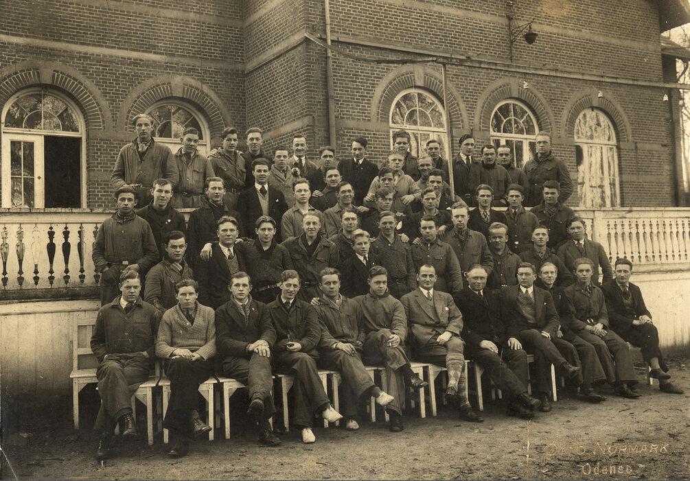 Unge arbejdsløse foran Skovpavillonen i Fruens Bøge