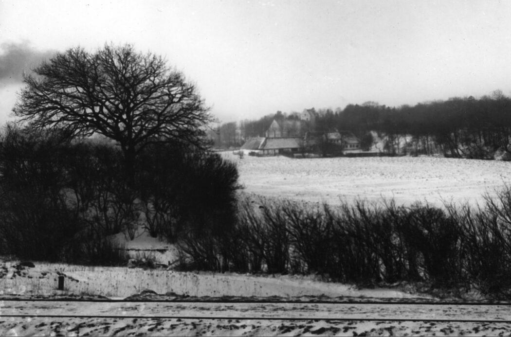 Dalum gamle præstegård set fra jernbanen ved Fruens Bøge