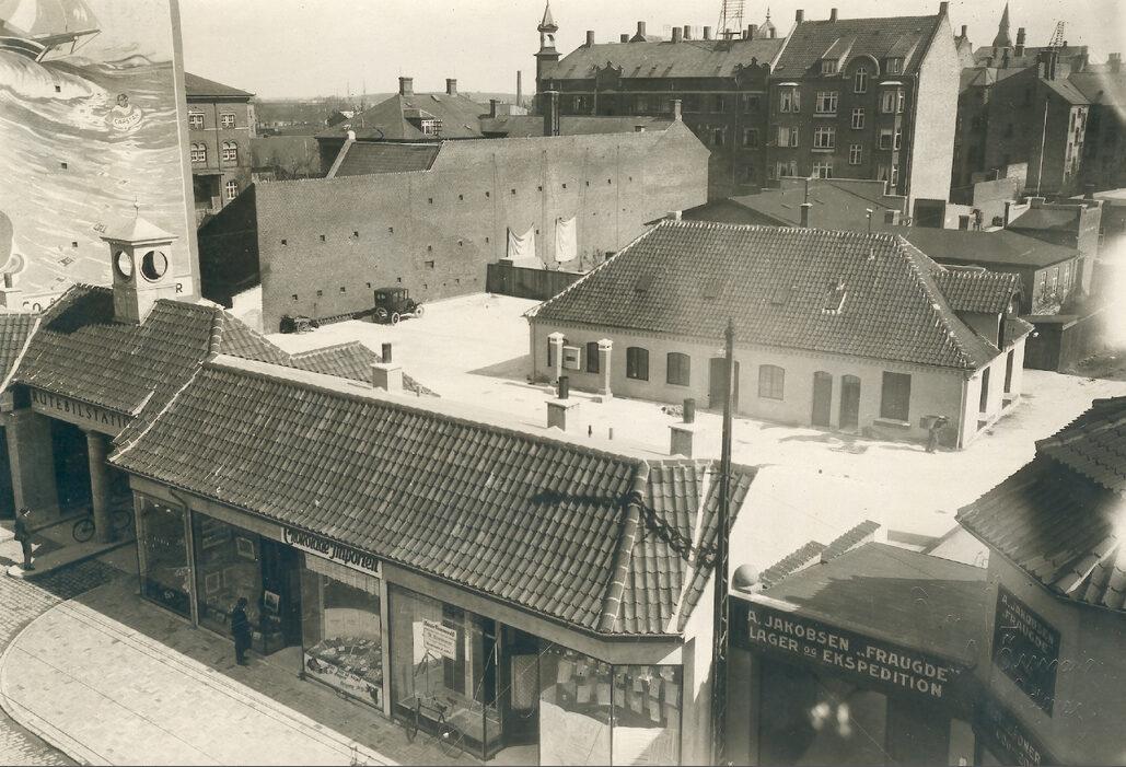 Udsigt over bygningskomplekset Kongensgade 69, bl.a. Rutebilstationen