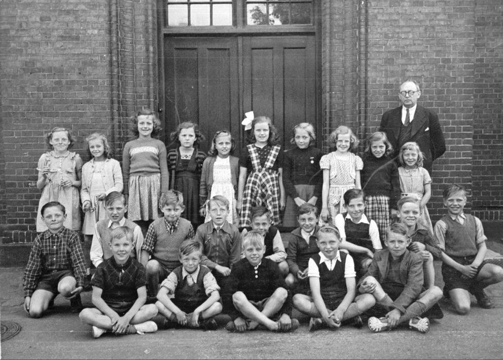Jernbanegade Skole. 3.b med lærer Ravnløkke (senere viceskoleinspektør)