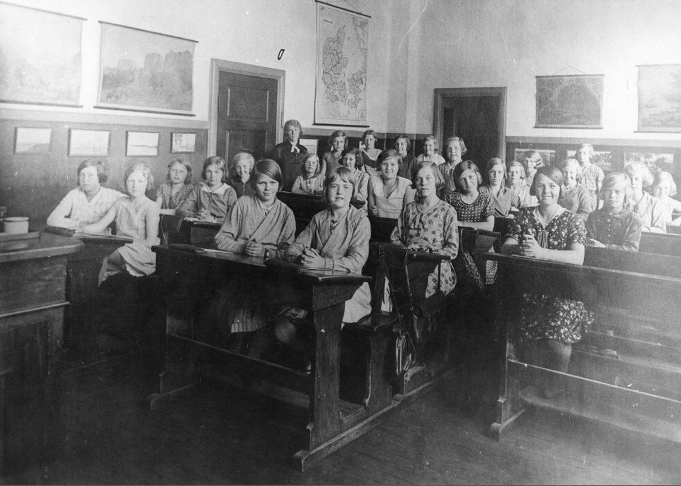 Holsedoreskolen. Klasseværelse med elever (piger) og lærerinde