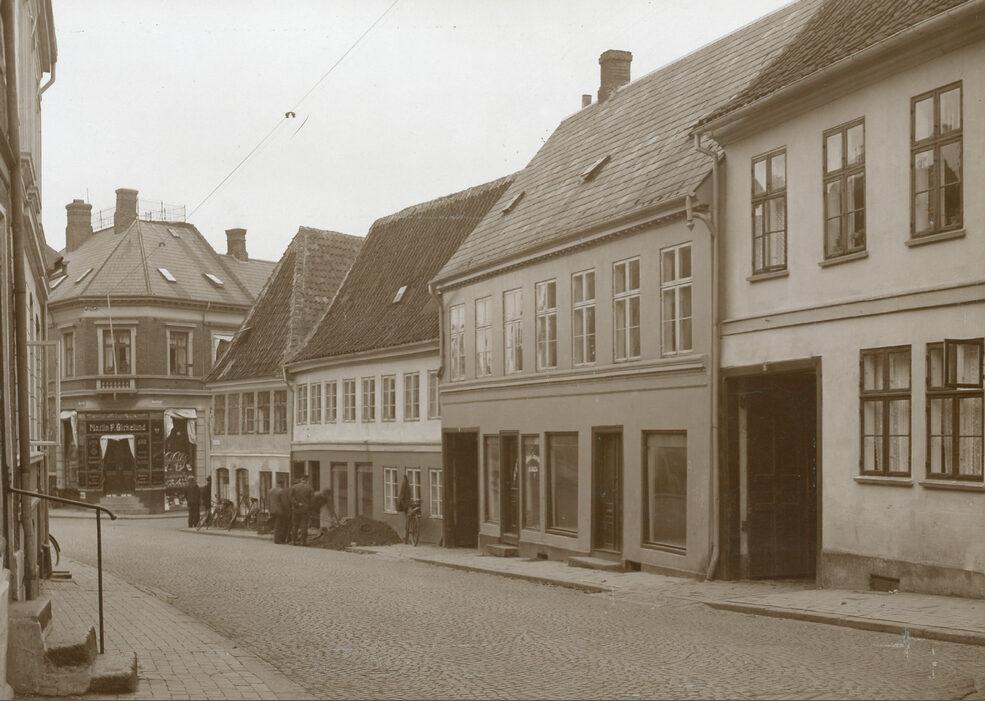Nedergades sydlige side set mod øst. Husrækken er nedrevet