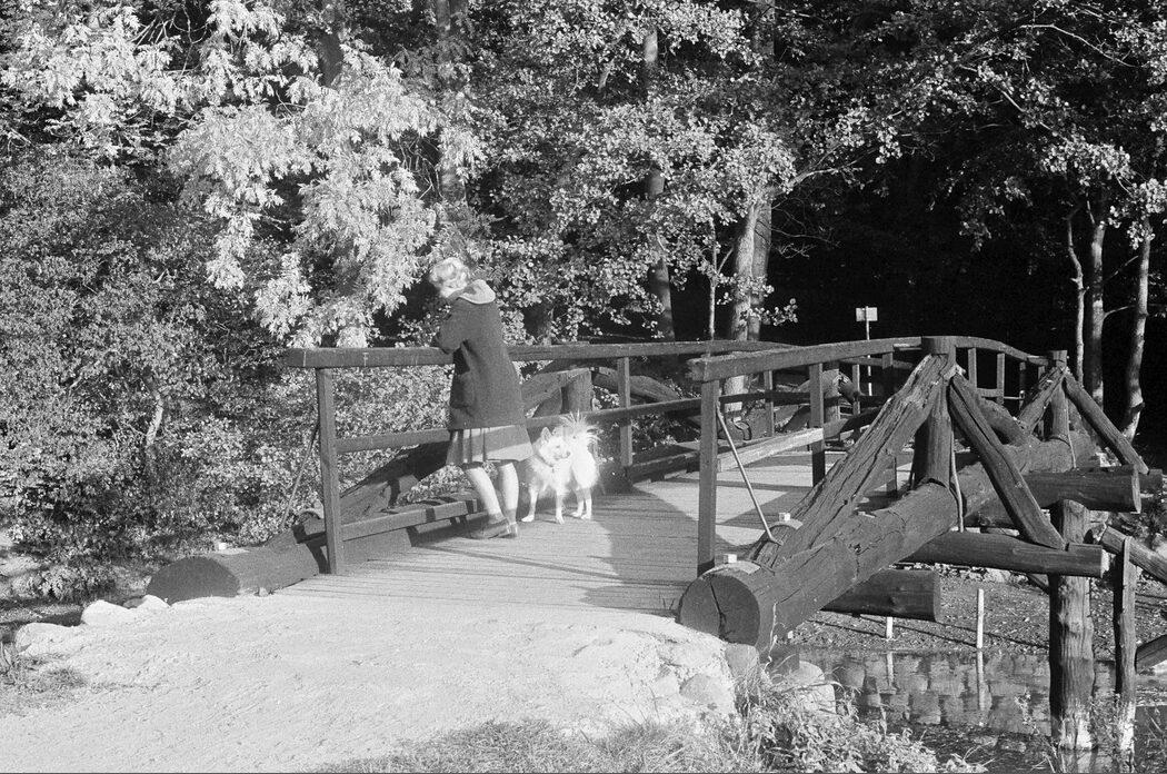 Træbroen fra engen over til Hunderup Skov, tæt på Den Fynske Landsby