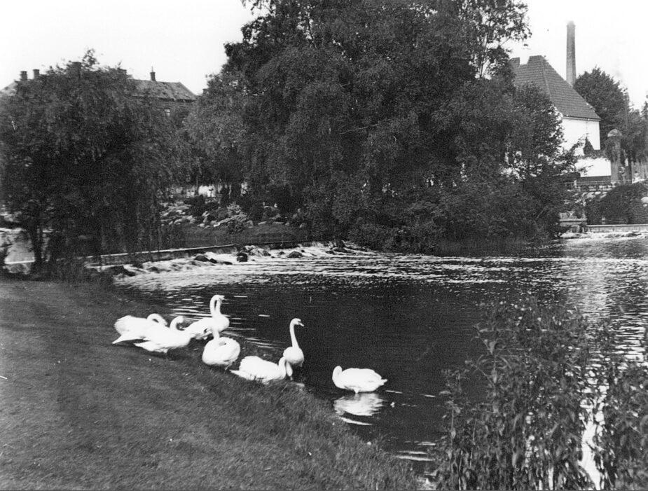 Munke Mose, slusen. Svaner i vandet