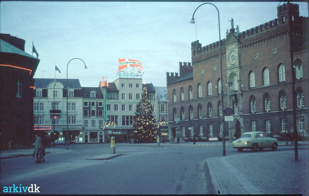 Flakhaven med juletræet tændt