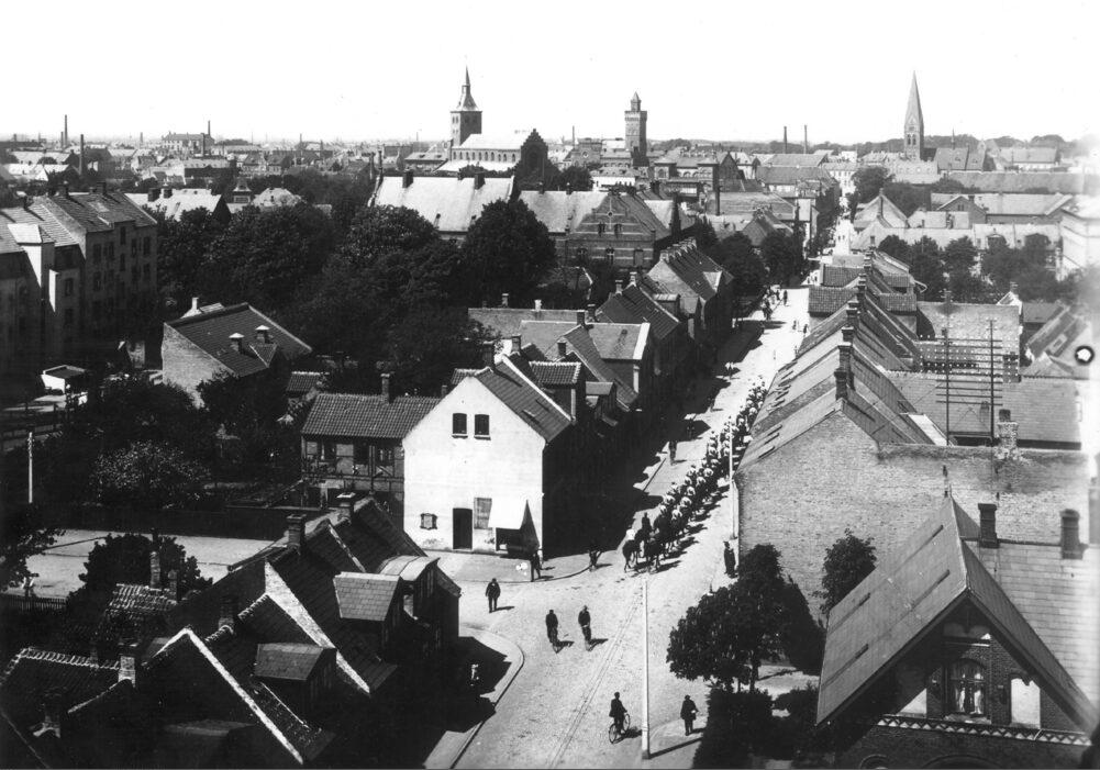 Udsigt fra vandtårnet, Albanigade. Dragoner rider gennem Albanigade