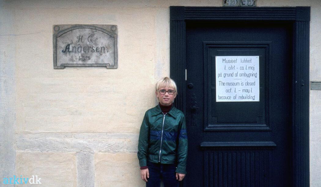 En dreng foran døren til H.C. Andersens hus