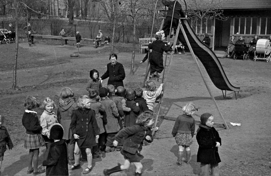 Munke Mose. Børn på legeplads med rutsjebane