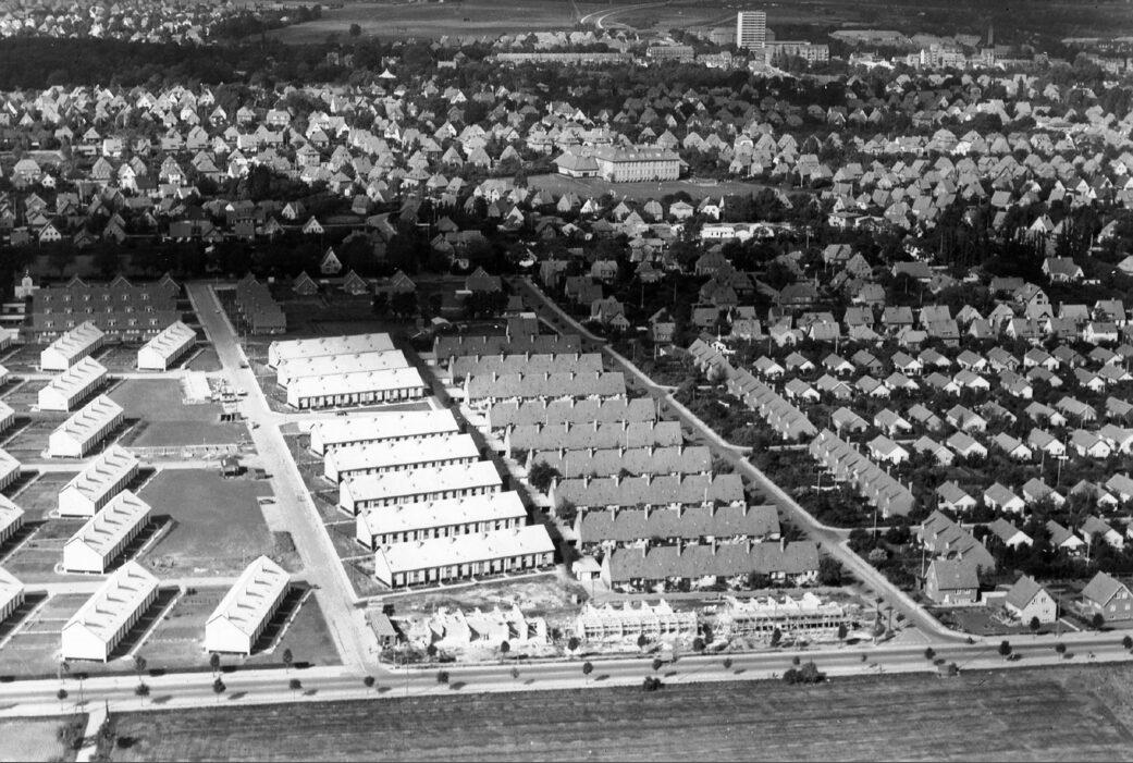 Luftfotografi, udsigt over bebyggelsen Folkebo på Hjallesevej