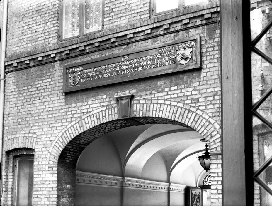 Overgade 8, Løveapoteket. Skilt over port