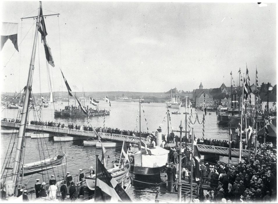 Kongeskibet Dannebrog ankommer til Sønderborg i forbindelse med Gneforeningen