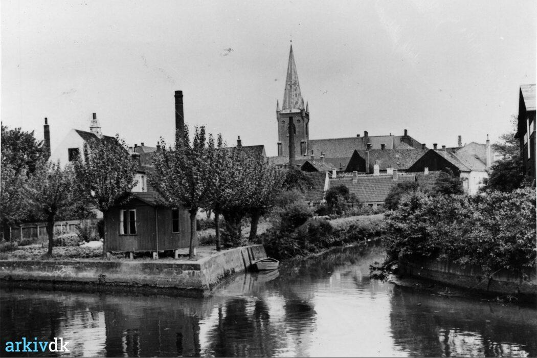 Vejle. Mølleåens udløb i Sønderåen ved Fiskergade