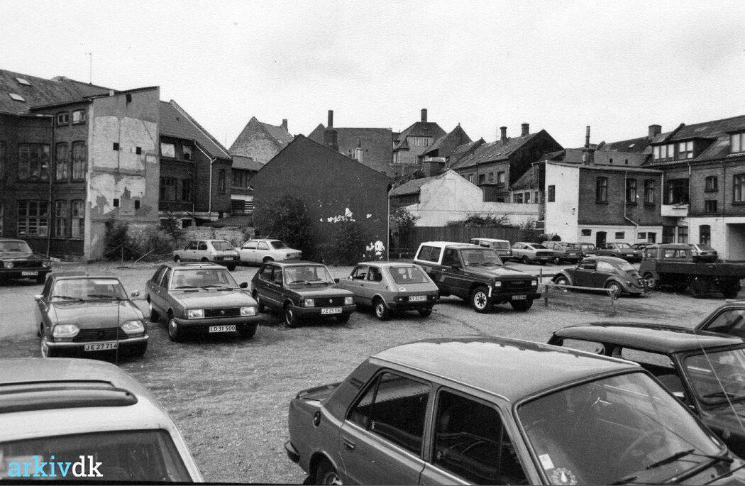 Vejle. Parkeringsplads mellem Dæmningen og Grønnegade