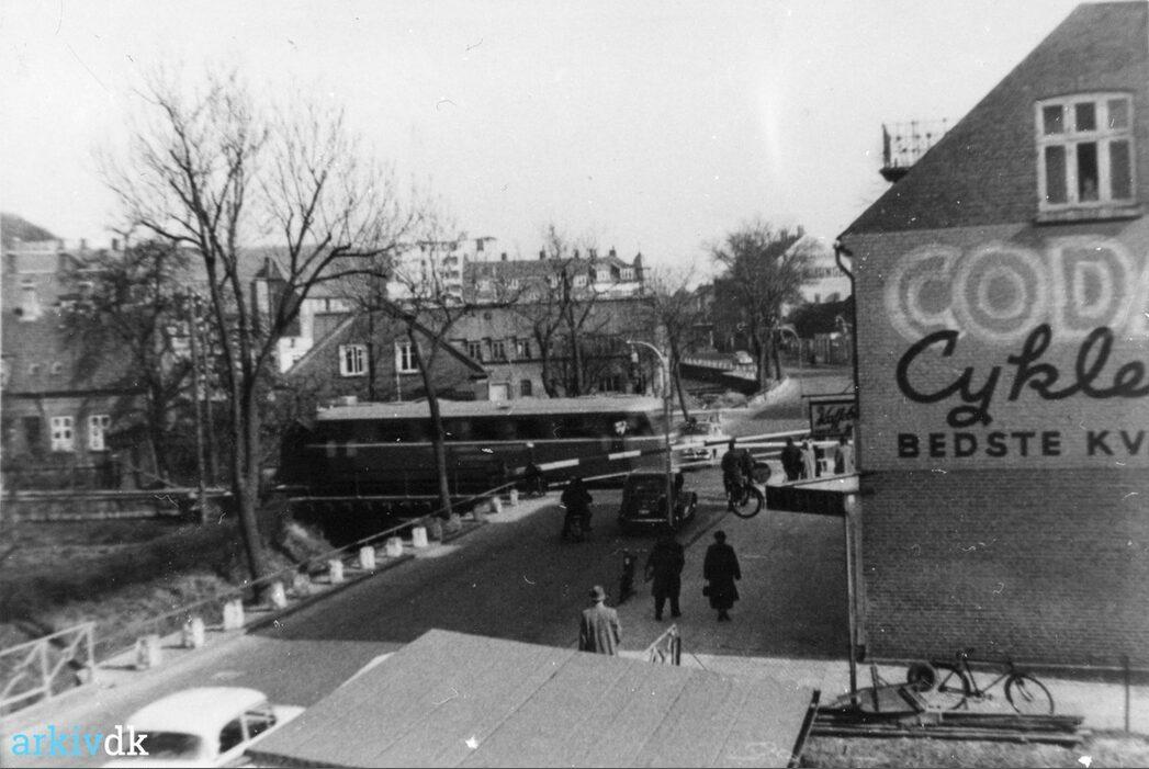 Vejle. Skinnebus passerer overskæring i Vesterbrogade