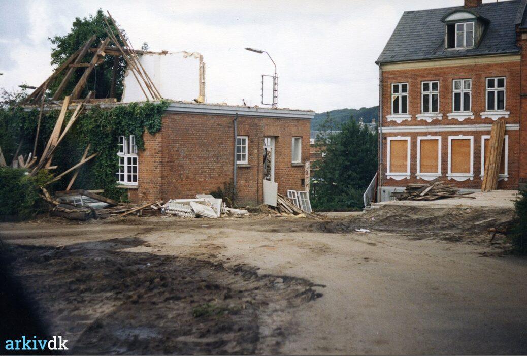 Vejle. Portbygning og Beriderbakken 5 under nedrivning
