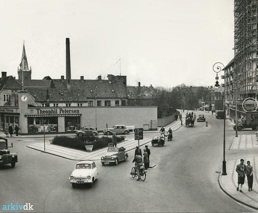 Vejle. Trafik på Dæmningen og Sønderbrogade