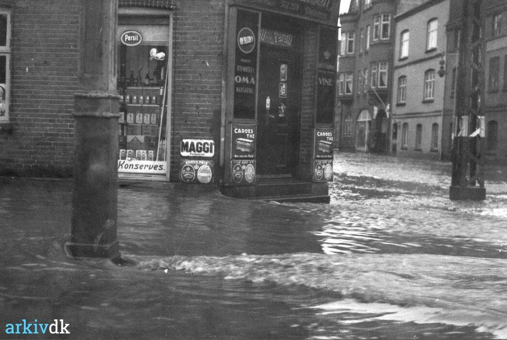 Vejle. Oversvømmelse i Vesterbrogade og Vedelsgade