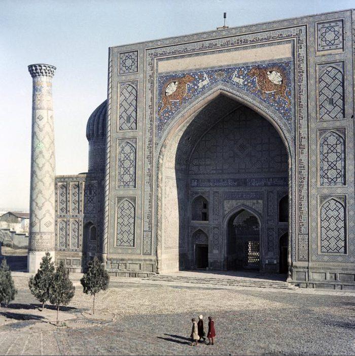 Медресе Шир-Дор на площади Регистан, построенное в XVII веке. Узбекская ССР